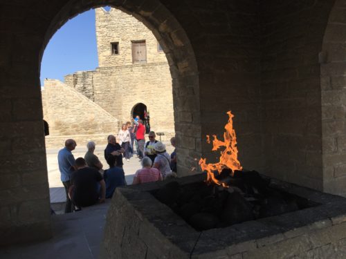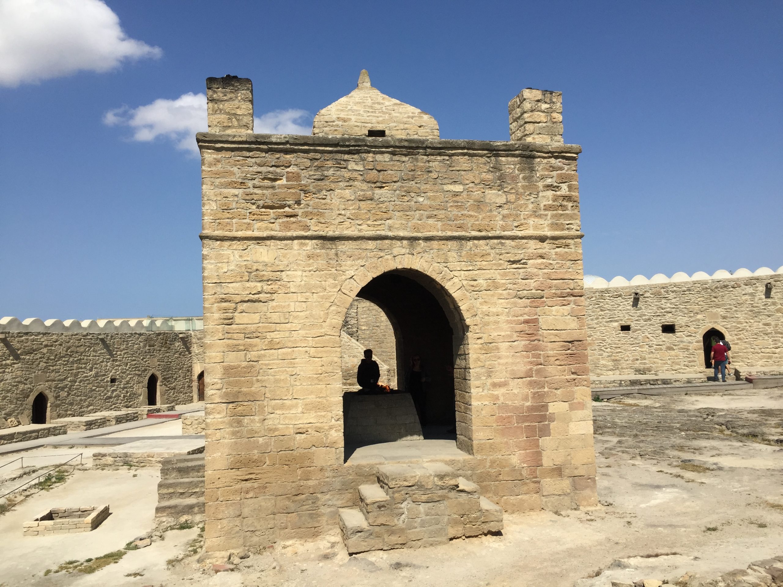 バクー郊外のスラハニ村にある、17世紀に造られた寺院。アゼルバイジャンは古代から拝火教という火を崇める宗教があり、中央にある五角形の祭壇の真ん中では常に炎が燃えていて、この炎は2015年バクー開催の欧州五輪の聖火として使われた。祭壇の周りは石造りの部屋が取り囲んでおり、内部では歴史や出土品の展示などがある。地下鉄コログルKoroğlu駅上のバスターミナルから184番バスで終点まで。