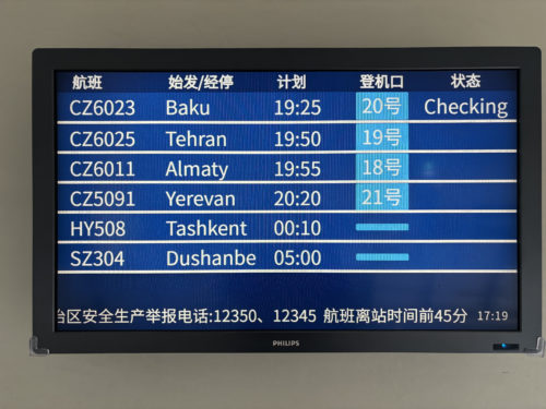 レアな路線としては、中国南方航空の広州ーウルムチーバクー線がある。月・水・金曜日のみの運行で日本からだと片道30時間以上かかるが、時間に余裕がある人には安くておすすめ。中国南方航空では広州などでのトランジットの際、条件によって無料でホテル手配をしてくれることがある(一部有料)。